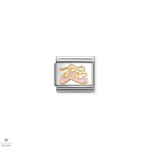 Eredeti összetett láncszem a Nomination Composable Classic karkötőhöz, balett-/tánccipő szimbólummal, 18 karátos aranyból és rózsaszín zománccal, rozsdamentes acélon. Olaszországban gyártva.