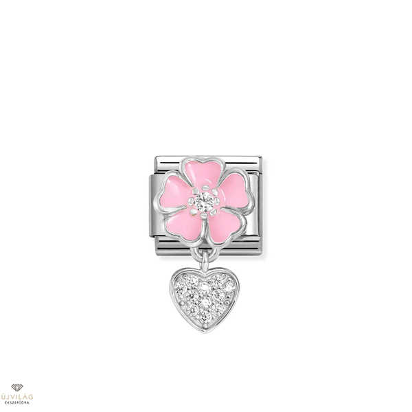 Eredeti összetett lánc a Nomination Composable Classic karkötőhöz, rózsaszín zománcból készült rózsaszín virággal és fehér cirkóniából készült szív medállal, 925-ös ezüstből.