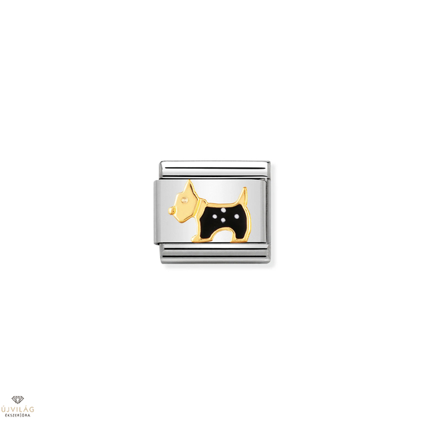 Eredeti összetett láncszem a Nomination Composable Classic karkötőhöz, terrier kutya szimbólummal, 18 karátos aranyból és zománcból, rozsdamentes acélon. Olaszországban gyártva.