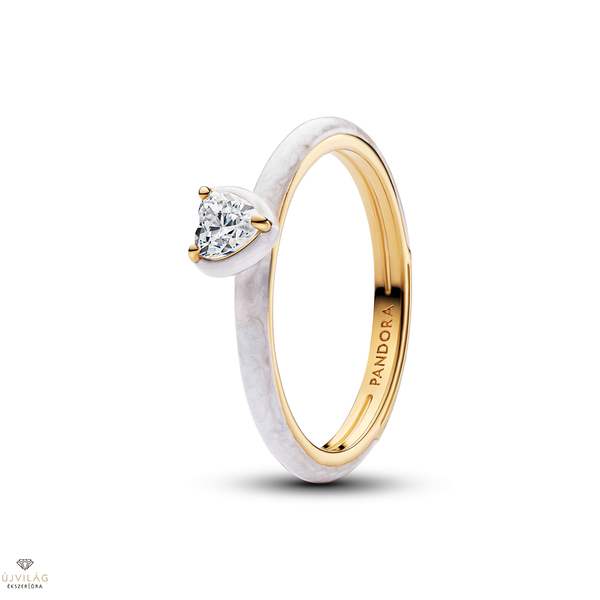 Pandora Me szív gyűrű cirkóniával és csillogó fehér zománccal 54-es méret - 163088C01-54