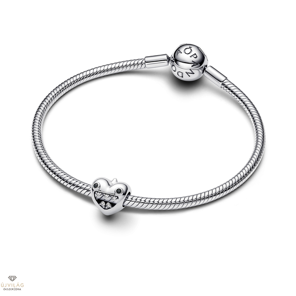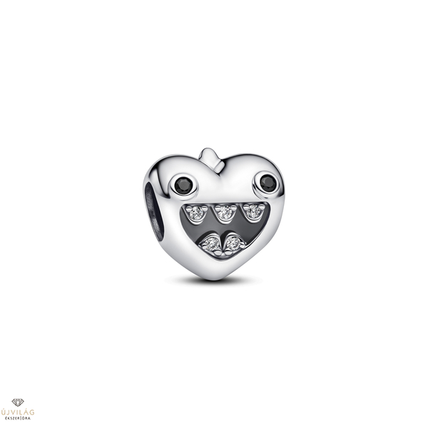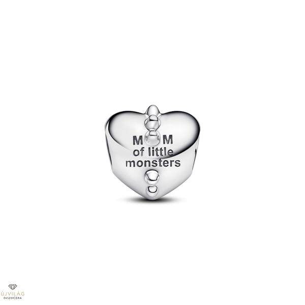 Meríts erőt az anyaság játékos oldalából az Anya kis rosszcsontjai szív charmmal! A sterling ezüstből készült szív alakú charm egyik oldalán a „Mum of little monsters” gravírozás, másik oldalán pedig egy rosszcsont arc látható. A charmot háromdimenziós tüskék, kivágások és szikrázó kövek díszítik, még feltűnőbbé téve az ékszert. Az anyaság és annak valamennyi megnyilvánulási formája által ihletett charm azt jelképezi, hogy a kis bajkeverők egyben az anyukák legnagyobb örömét is jelenthetik. Méretek: Mélység: 8,9 mm. Magasság: 10,2 mm. Szélesség: 10,9 mm.