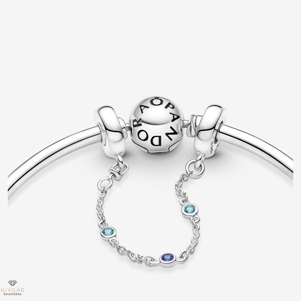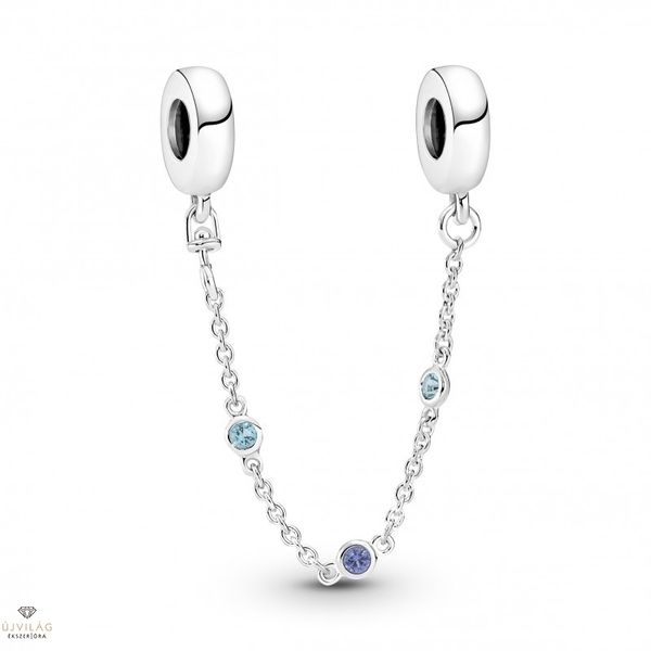 Tartsa biztonságban óceáni kincseit ezzel a tengeri ihletésű biztonsági lánccal. Ezüstből készült, mindegyik pánt belsejében szálak rögzítik a Pandora Moments karkötőt. Három kék mesterséges kristály található a láncon, hogy az óceán illatát hozza a stílusodba. Méretek: Mélység: 9,4 mm Magasság: 9,4 mm Szélesség: 3,3 mm