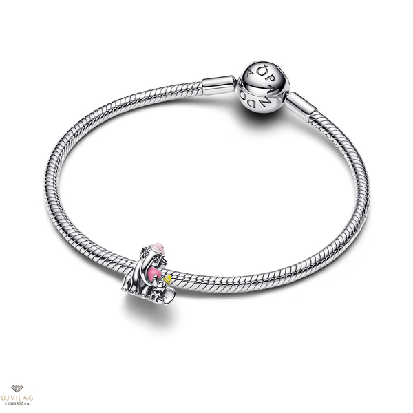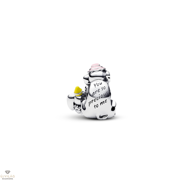 Ünnepeld az anya-gyermek kötelék örömét és kedvességét a Disney Dumbo és anya charmmal! Ez a sterling ezüst charm a Disney-hős Dumbót és mamáját, Mrs Jumbo-t ábrázolja, ahogy mindketten színes kalapot viselve ormányukkal egy rózsaszín szívet ölelnek át. Mrs. Jumbo figurájának hátoldalán a „You are so precious to me” gravírozott üzenet olvasható. A feltétel nélküli anyai szeretet gyengédségét és erejét szimbolizáló charm arra emlékeztet, hogy még a legkisebb teremtmények is képesek lehetnek rendkívüli dolgokra. Méretek: Mélység: 10,8 mm. Magasság: 13 mm. Szélesség: 12,6 mm.
