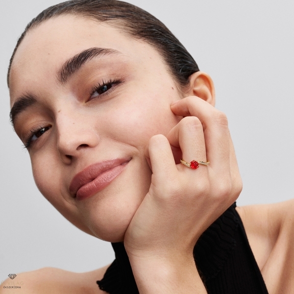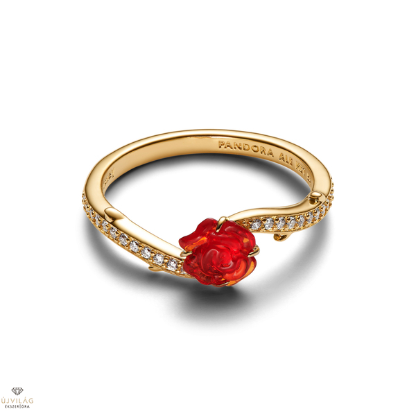 Pandora Disney "A Szépség és a Szörnyeteg rózsa" gyűrű cirkóniával és piros muránói üveggel 58-as méret - 163984C01-58