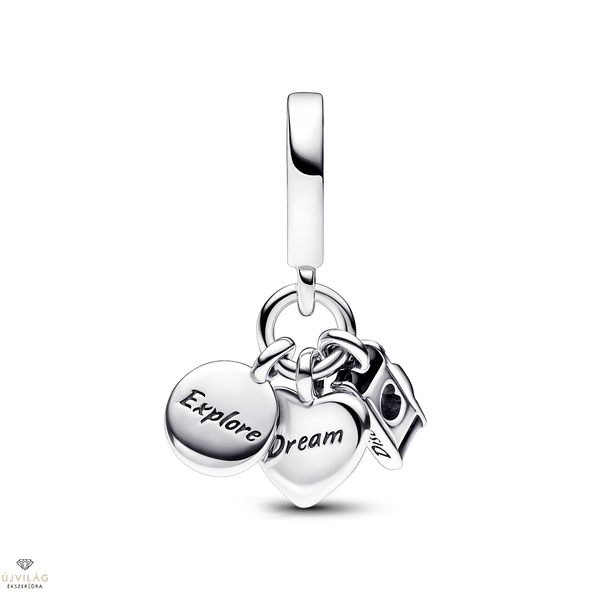 Pandora fényképezőgép, szív és iránytű tripla függő charm - 792703C01