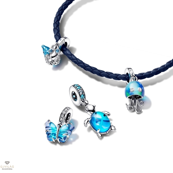Az otthon olyan érzés, amit mindig magaddal viszel – csak kérdezd csak meg a mi kis remeterákunkat. A Foszforeszkáló remeterák függő charm sterling ezüstből készült, és egy cuki remeterákot mintáz, amelynek fő jellegzetességei a valósághű részletek és a kézzel felvitt, pöttyözött kék tűzzománccal díszített, a sötétben zöld színnel világító spirális csigaház. A szemeken, az ollókon és a felső részen ragyogó kövek életre keltik a charmot. A remeterákok üres csigaházakba költöznek be, majd amikor kinövik a meglévő házukat, újat keresnek maguknak. Viseld ezt a charmot az otthon kényelmének és biztonságának szimbólumaként, valamint azon képességünk jelképeként, hogy ezt az érzést magunkkal vihetjük, miközben változunk és fejlődünk! Méretek: Mélység: 7,6 mm, Magasság: 9,4 mm, Szélesség: 9,5 mm - A megfelelő Pandora charm karkötő méret kiválasztása: csuklóját szorosan mérje meg mérőszalaggal, majd a kapott értékhez adjon hozzá 2-2,5 cm-t. Példa: 17 cm-es csuklóméret esetén 19 cm-es Pandora charm karkötőt javaslunk.