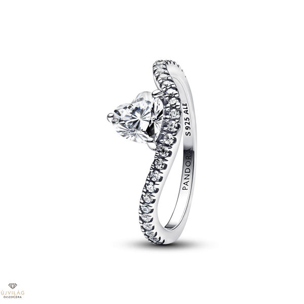 Pandora Hullámzó pavé szív gyűrű 52-es méret - 193661C01-52