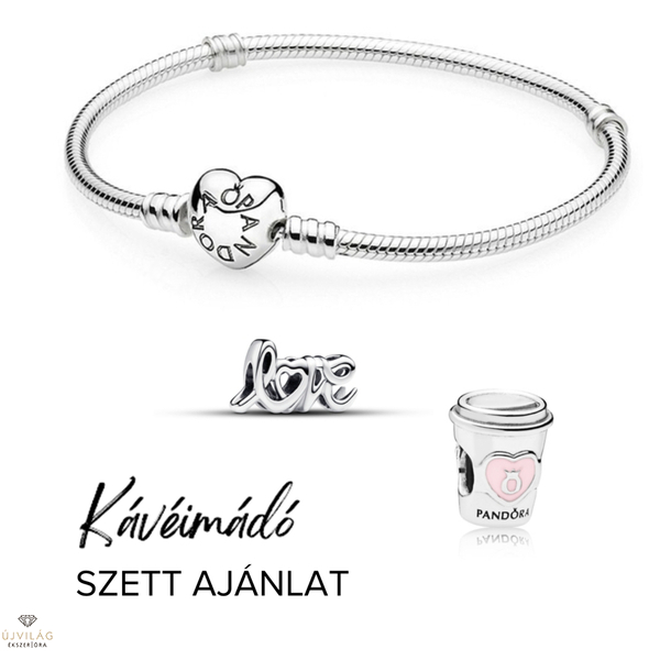 A Pandora Kávéimádó szett tartalma: 1db 19 cm-es ezüst karkötő (590719-19), 1db Kávés pohár charm (797185EN160) és 1db Love felirat charm (793055C00) . A felsorolt termékek nem módosíthatók, a szett csak ebben a formában érhető el kedvezményesen, visszavonásig, ill. a készlet erejéig. Ajándékfutár szolgáltatással igénybe vehető. Más ajánlattal, akcióval, ajándékkal, kedvezménnyel, kuponkóddal nem vonható össze. - A megfelelő Pandora charm karkötő méret kiválasztása: csuklóját szorosan mérje meg mérőszalaggal, majd a kapott értékhez adjon hozzá 2-2,5 cm-t. Példa: 17 cm-es csuklóméret esetén 19 cm-es Pandora charm karkötőt javaslunk.