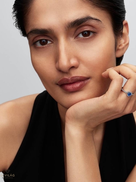 Pandora Kiemelt hercegnőkék szív gyűrű 58-as méret - 198421C09-58