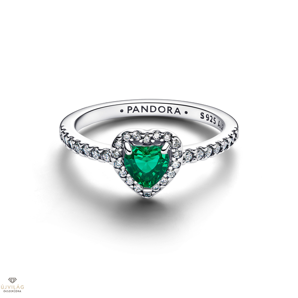 Pandora Kiemelt királyzöld szív gyűrű 52-es méret - 198421C07-52