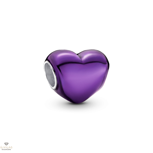 Legyen kiemelkedő a stílusod a Metál hatású lila szív charmmal! A kézzel megmunkált sterling ezüst szív alakú ékszert kézzel felvitt áttetsző lila tűzzománc díszíti, amely alól átragyog fém alap is. Az opálos és az áttetsző között egyensúlyozó ékszer igazán szembetűnő, ha letisztult charmokkal párosítod Pandora Moments karkötődön. De viselheted más színes ékszerekkel is a vibráló hatásért.
