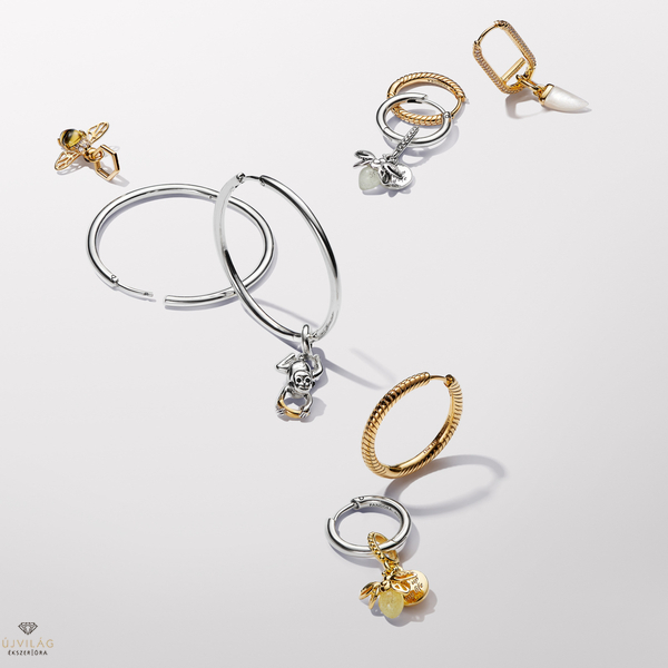 Szabja személyre stílusos alapdarabjait a Pandora Moments 18 mm-es charm karika-fülbevalóval. A sterling ezüstből készült fülbevaló jellegzetessége a lekerekített profil és a karikák belsejében látható ikonikus Pandora logó. A fülbevalót úgy terveztük, hogy karikánként egy charmmal vagy függő charmmal személyre szabható legyen, így bármilyen hangulathoz, személyiséghez vagy alkalomhoz illően viselhető. Gyűjtse össze kedvenc charmjait, és játsszon a különböző kombinációkkal, hogy minden megjelenéshez egyedi kifejezésmódot hozhasson létre.