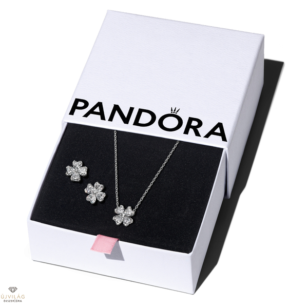 A Pandora Négylevelű lóhere szett tartalma: 1db 45 cm-es ezüst nyaklánc (394502C01-45), 1db fülbevaló (294500C01). A felsorolt termékek nem módosíthatók, a szett csak ebben a formában érhető el kedvezményesen, visszavonásig, ill. a készlet erejéig. Ajándékfutár szolgáltatással igénybe vehető. Más ajánlattal, akcióval, ajándékkal, kedvezménnyel, kuponkóddal nem vonható össze.