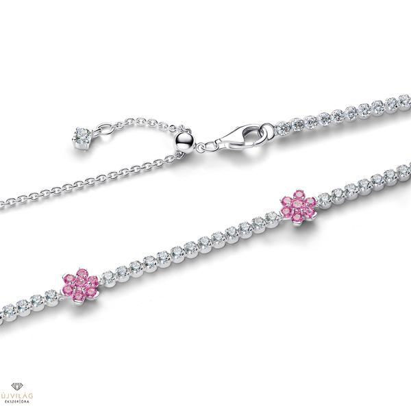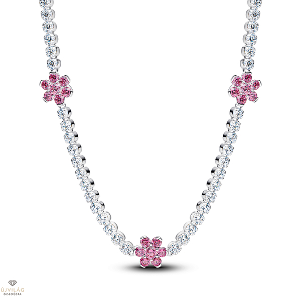 Pandora Rózsaszín virágos tenisz nyaklánc - 394561C01-40