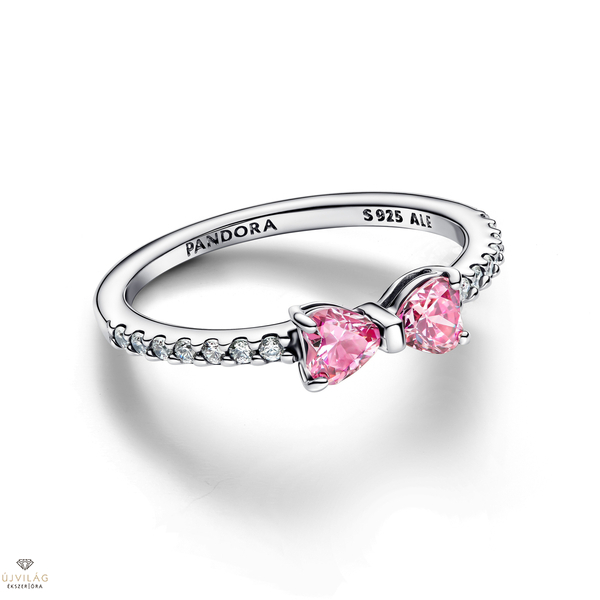Pandora Szikrázó rózsaszín masnis gyűrű 56-os méret - 193510C01-56