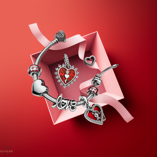 Vidd magaddal a szeretetet mindenhová, szív alakú kapoccsal díszített karkötőnkkel: a védelem, a szabadság és a szárnyaló szívek szimbólumával. A sterling ezüstből készült karkötő akár 18 charmmal vagy függő charmmal is személyre szabható. A kapocs 15 süllyesztett foglalatú cirkónia segítségével ragyog, és Ámor szárnyait formázza. Hogy ne lehetne szeretni? Méretek: Mélység: 9,5 mm; Magasság: 11,3 mm; Szélesség: 10,9 mm.