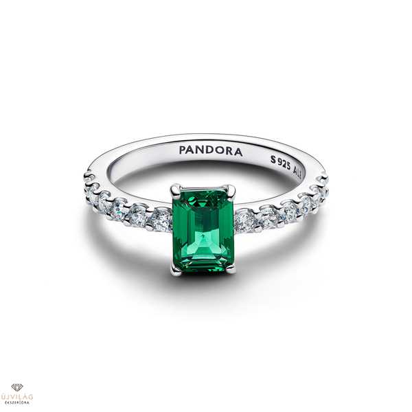 Pandora Téglalap alakú, csillogó zöld kristály gyűrű 50-es méret - 194506C01-50
