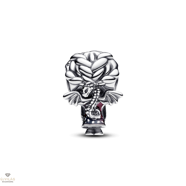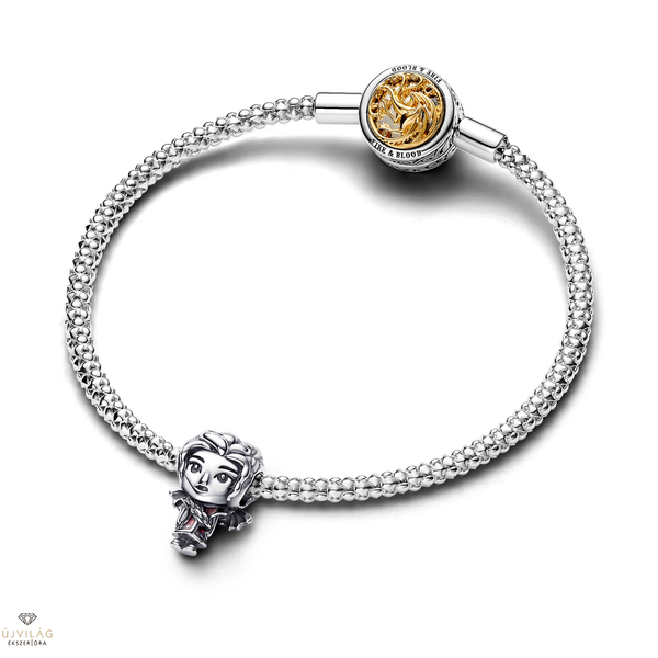 Viselje a vad bátorság szimbólumát a Trónok harca Daenerys charm segítségével! A Trónok harca ikonikus alakját, Daenerys Targaryent idéző sterling ezüst charm felnagyított fejjel és finom részletekkel rendelkezik, beleértve a ruhát díszítő, sárkánypikkely mintás, áttetsző vörös tűzzománcot. A hátán Drogon – Daenerys három sárkánya közül az egyik – kis mása ül. Ez a charm Daenerys hihetetlen útja során tanúsított erejére és elszántságára fog emlékeztetni. Méretek: Mélység: 9,1 mm, Magasság: 15,4 mm, Szélesség: 10,9 mm - A megfelelő Pandora charm karkötő méret kiválasztása: csuklóját szorosan mérje meg mérőszalaggal, majd a kapott értékhez adjon hozzá 2-2,5 cm-t. Példa: 17 cm-es csuklóméret esetén 19 cm-es Pandora charm karkötőt javaslunk.