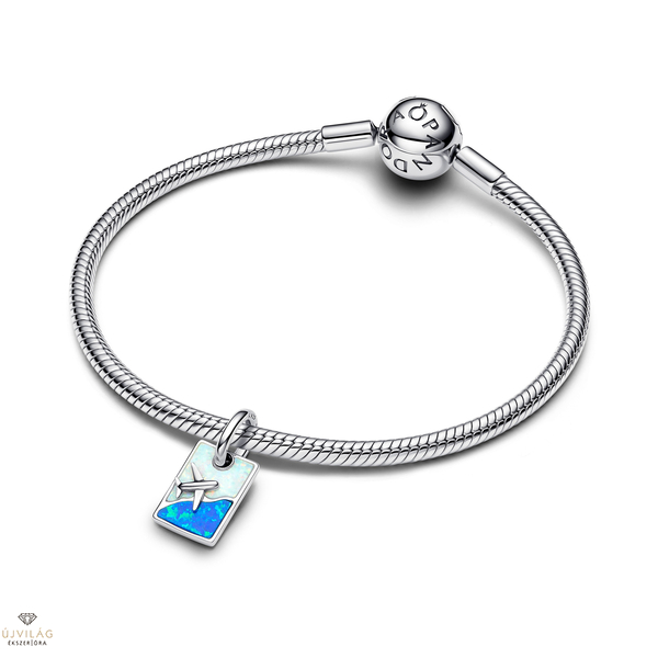 Bemutatjuk az Utazás függő charmot, egy fehér és kék laboratóriumban előállított opállal díszített sterling ezüst függő charmot. Ez az utazás ihlette charm egy repülőgépet és egy gravírozott üzenetet ábrázol. Tökéletes választás a született világjárók számára. Méretek: Mélység: 2,6 mm. Magasság: 12,3 mm. Szélesség: 8,7 mm.