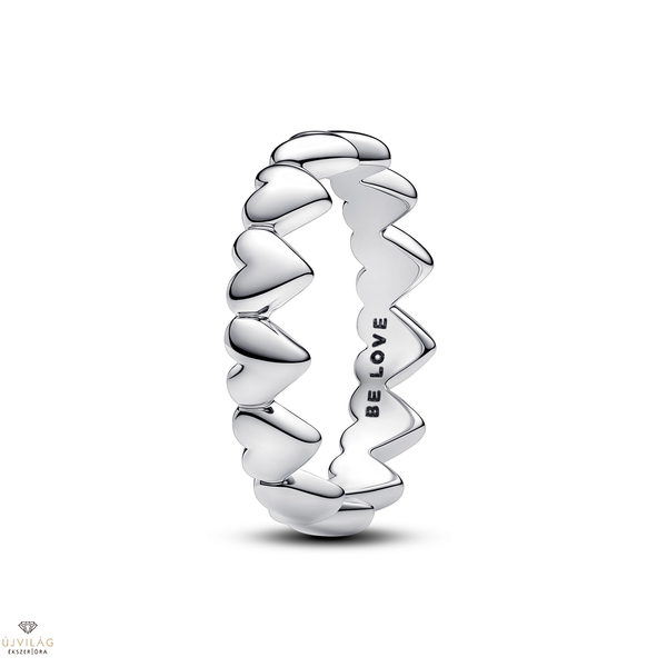 Legyen az ajándékod szívből jövő ezzel a sterling ezüst gyűrűvel. A mesterien megmunkált, szívecskék sora alkotta gyűrűsínnel rendelkező, romantikus hangulatot árasztó gyűrű önmagában vagy kontrasztos Pandora gyűrűkkel kombinálva is gyönyörűen mutat. Add ajándékba, hogy jelentéssel teli módon fejezdhesd ki szeretetedet, vagy lepd meg magad egy olyan darabbal, amelyet mindig szívesen viselsz majd. Méretek: Mélység: 2 mm; Magasság: 4,5 mm.
