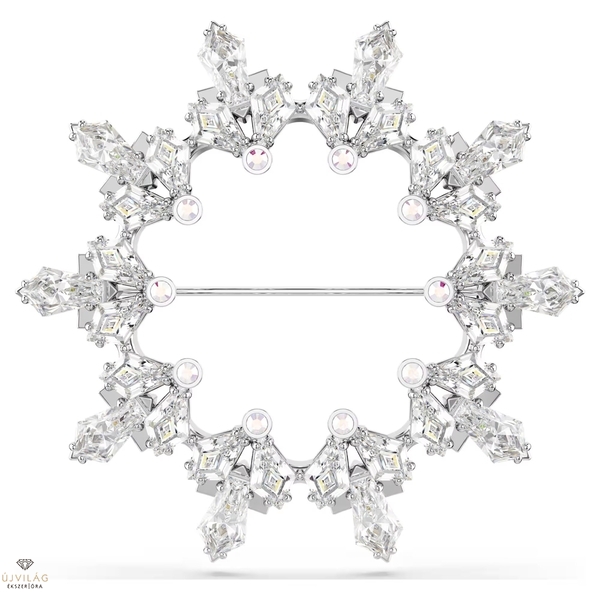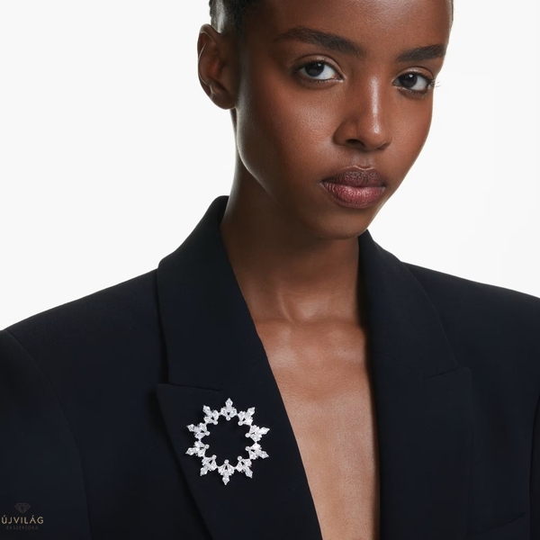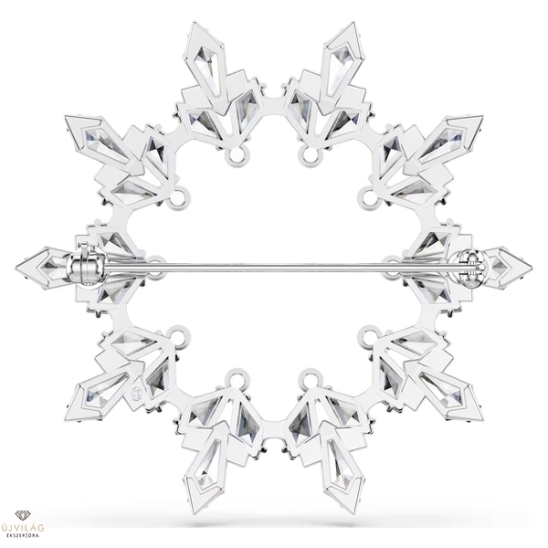 Ez a lenyűgöző hópehely formájú bross a természet egyedi szépségét tükrözi. A ródiumbevonatú darab lélegzetelállító módon példázza a Swarovski kristálymetszési szakértelmét a gondosan megmunkált Swarovski Zirconia kövekkel, amelyek modern, mégis klasszikus téli motívumot mintáznak. A maximális hatás érdekében viselje ezt a ragyogó darabot sötét színű, monokróm öltözékekkel. Méret: 5.5 x 5.3 cm.