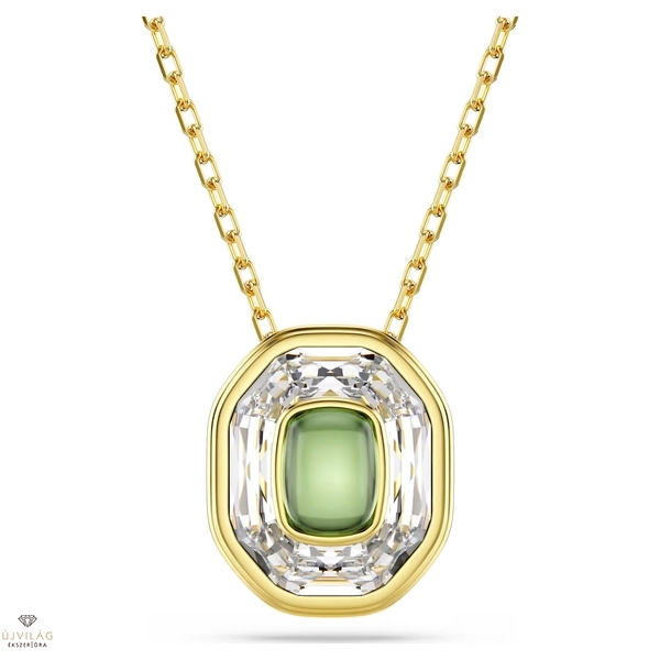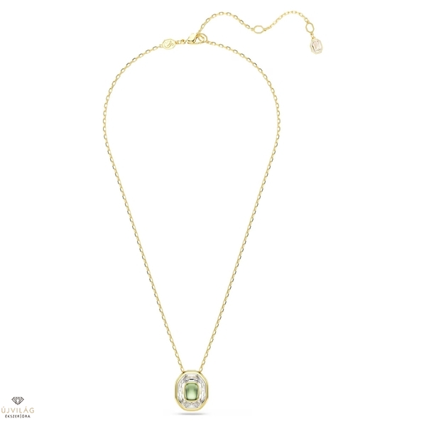 A kreativitásé a főszerep ebben a kifejező Chroma medálban. A finom láncon függő, aranyszínű bevonattal ellátott medál központi eleme egy nyolcszögletű motívum, amelyben egy élénk zöld kristály díszeleg egy nagyobb átlátszó kristály tetején. Ez az élénk és fényes ékszer egy időtlen darab, amely mindig eredeti stílust kölcsönöz viselőjének. Hossz (minimum - maximum): 38 - 45 cm; Medál mérete: 1 x 1.7 cm.