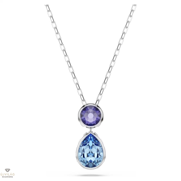 Ezzel a Chroma medállal hangulatának megfelelően fordíthatja a kristályt. Az ékszert egy központi lila kristály, valamint alatta egy nagyobb, megfordítható kristály díszít, amelynek egyik oldala átlátszó, a másik pedig kék. Játékos választás, amely ideális az önkifejezéshez. Hossz (minimum - maximum): 38 - 45 cm. Minta mérete: 1.6 x 0.8 cm.