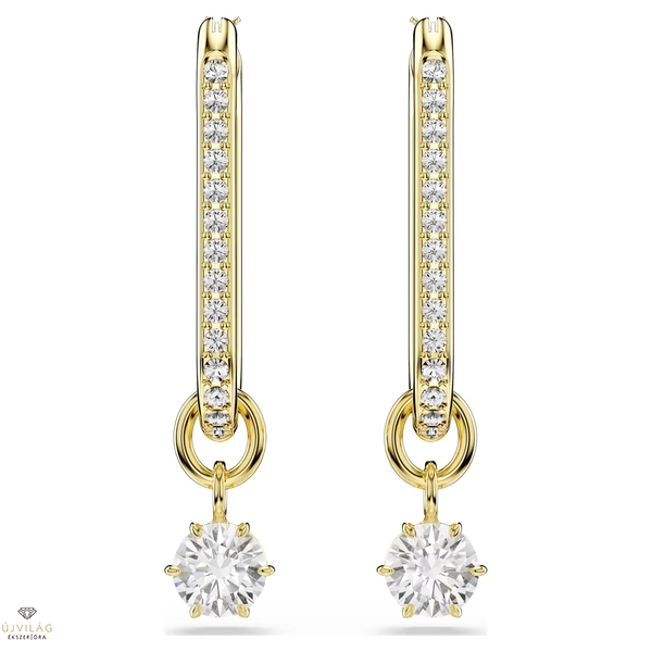Tegye ragyogóvá mindennapjait e káprázatos, aranyszínű bevonattal ellátott fülbevaló csillogó intenzitásával. Mindkét hosszúkás karika fülbevalót ragyogó pavé díszíti, alatta pedig egy finoman lebegő, prong foglalatú Swarovski Zirconia kristály pompázik. A klasszikus karika stílus csodálatos alternatívája, amelyet a Constella család mennyei eleganciája ihletett. Méretek: 3.6 x 0.7 cm