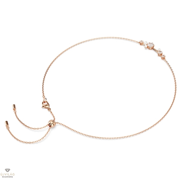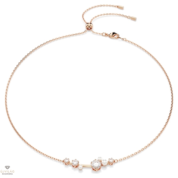 Varázsolja még szebbé megjelenését a csillagok ragyogását idéző sokoldalú Constella darabbal. A rózsaarany-tónusú bevonattal ellátott ékszer különleges állítómechanizmussal rendelkezik, így nyakláncként és rövid nyakékként is viselheti. Az elöl elhelyezett, különféle méretű Swarovski Zirconia kövek és Swarovski kristálygyöngyök szinte lebegnek a szelvényes kialakításon, a kozmosz csodás szépségét megidézve. Variálja kedve szerint, és a tökéletesen ragyogó megjelenés érdekében párosítsa egy hozzáillő gyűrűvel. Hossz (minimum - maximum): 38 - 48 cm; Minta mérete: 0.9 x 4.4 cm.