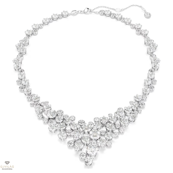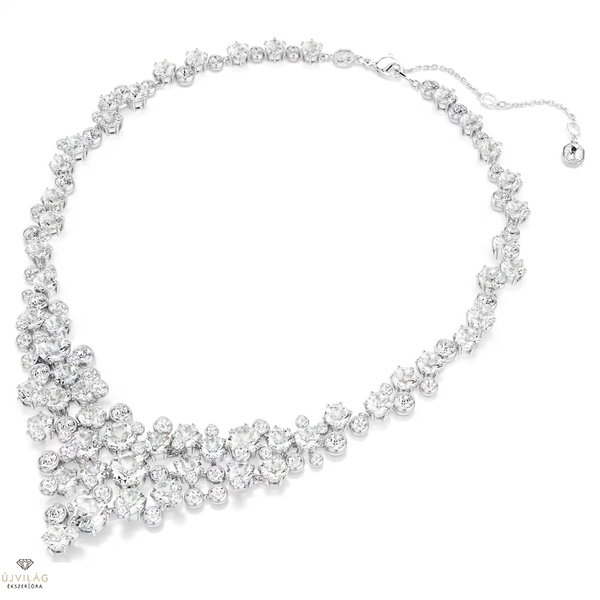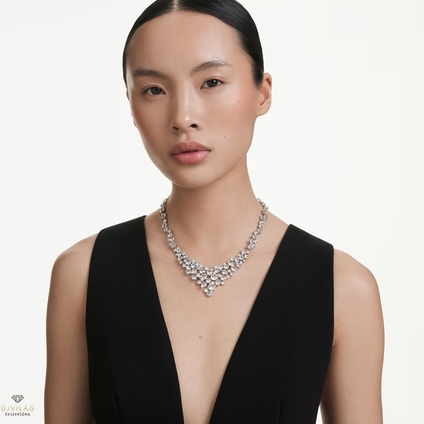 Emelje új szintre ragyogását ezzel a lélegzetelállító V-alakú nyaklánccal. A ródiumbevonatú ékszer a fényes csillagok halmazához hasonlóan több réteg átlátszó Swarovski-kristállyal díszített, amelyek gyönyörűen hangsúlyozzák bármelyik ruhadarab elejét. A delfin zár állítható méretet biztosít, így csodás kiegészítő lehet szezonális ünnepségeken. Méretek: Hossz (minimum - maximum): 38 - 45 cm. Szélesség: 4 cm