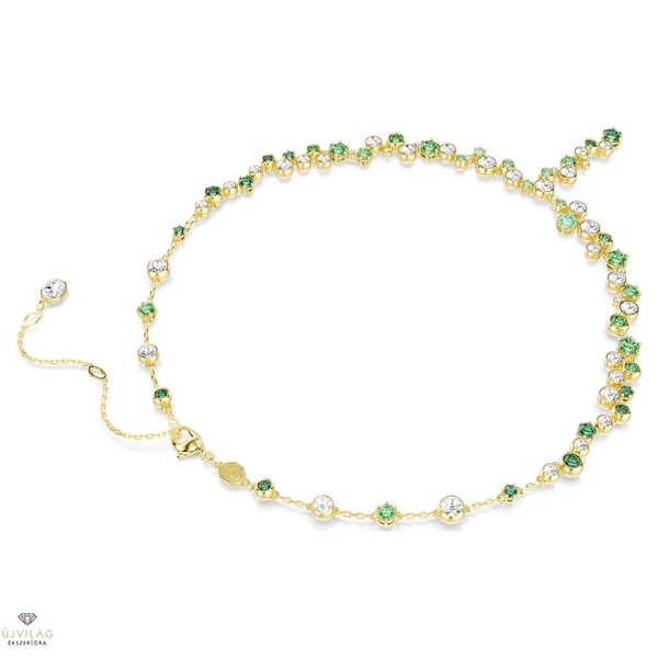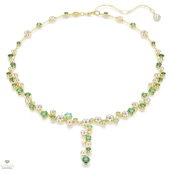 Ez a csillagos Constella ékszercsaládba tartozó nyaklánc éppoly kifinomult, mint amennyire magával ragadó. A T alakú sziluettet teljes egészében kristályok és Swarovski Zirconia díszítik, hipnotikus zöld árnyalatok és átlátszó tónusok keverékével, amelyek tökéletesen illenek az aranyszínű bevonathoz. Viselje más Constella darabokkal együtt, hogy vibráló és vidám megjelenést érjen el. Hossz (minimum - maximum): 38 - 45 cm. Szélesség: 0.6 cm.