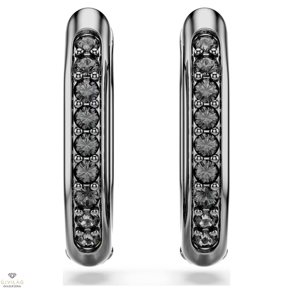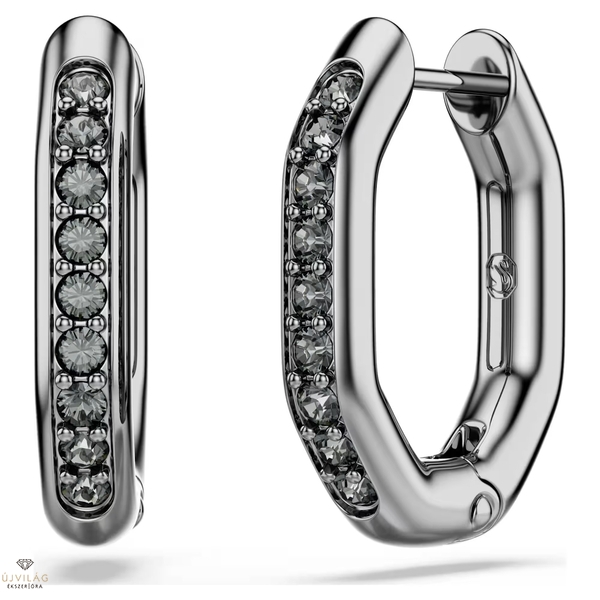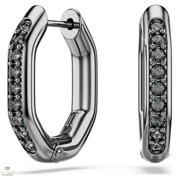 Fejezze ki egyéniségét ezzel a geometrikus karika fülbevalóval. A karcsú, nyolcszögletű kialakítás merész keretet ad a kerek, fekete kristályok sorának, amelyek mindegyikét finom prong foglalat díszíti. A különleges rugós lapos szerkezetnek köszönhetően a fülbevaló könnyen nyitható és zárható, a ruténium bevonat pedig lehetővé teszi, hogy más Dextera darabokkal is viselhesse. Méret: 1.8 x 0.3 x 1.5 cm