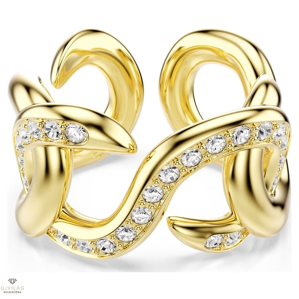 Ívelt láncszemeivel és káprázatos ragyogásával ez a Swarovski gyűrű ragyogó módja az önkifejezésnek. Az arany tónusú bevonattal ellátott fém a Dextera ipari stílusának jó példája, és átlátszó kristályok díszítik a maximális csillogás érdekében. Viselje hozzáillő ékszereinkkel, amelyek ugyanilyen jellegzetes formavilágúak.