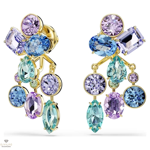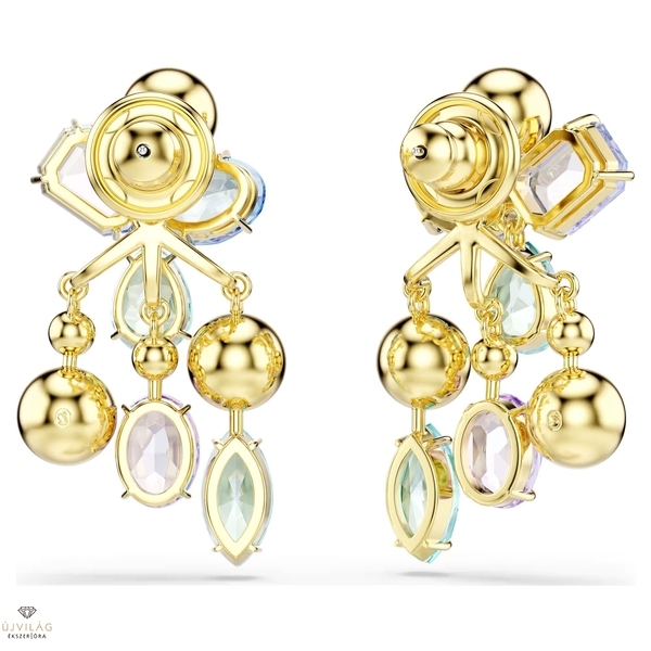 Ezzel a sokoldalú Gema fülbevalóval két külön megjelenést hozhat létre nappalra és estére. Viselje bedugós fülbevalóként, mindkét oldalon egy-egy négy színes kristályból álló fürttel, vagy tegye rá a fülbevaló jacketet a zuhatagszerű alternatíváért. A jellegzetes Gema stílusban a kristályok többféle formában és árnyalatban jelennek meg, egy csipetnyi játékosságot kölcsönözve az ékszernek. Méret: 3.7 x 1.9 cm.