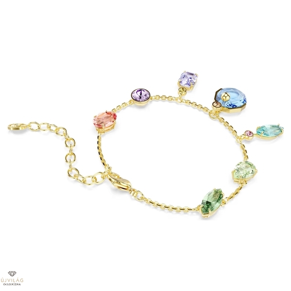 A napfényes Gema karkötő minden részlete meglepetéseket tartogat. Élénk formavilágát több Swarovski Recreated™ kristály teszi teljessé, a különböző formák pedig egyedi karaktert kölcsönöznek az ékszernek. Tökéletes kiegészítő, ha dinamikus színekre vágyik. Hossz (minimum - maximum): 15.5 - 20 cm. Minta mérete: 1.6 x 1.2 cm.