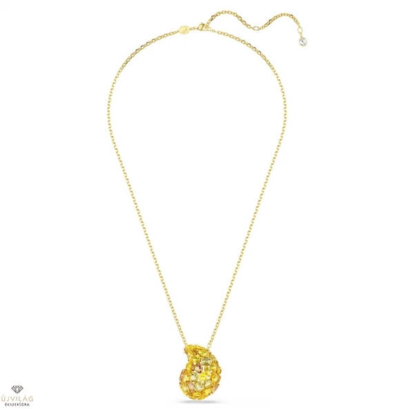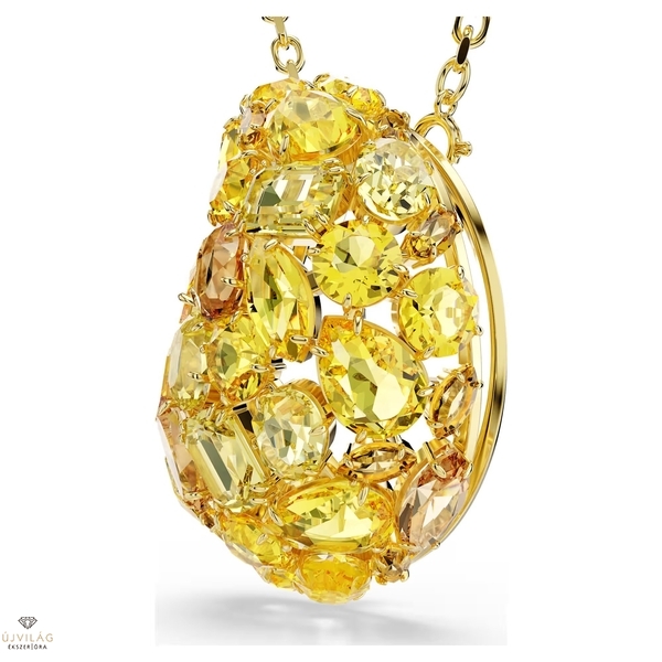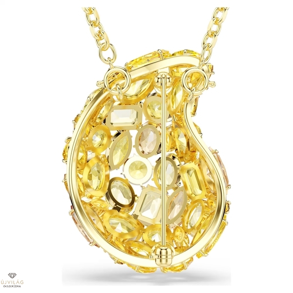 A medálként és brossként is funkcionáló, sokoldalú alkotás két élénk ékszert kínál egyben. A központi motívum egy finom, aranyszínű bevonattal rendelkező láncra van felfüggesztve, és sárga és borostyánszínű kristályok igéző kirakósát tartalmazza. A Gema váratlan formációit és vibráló szépségét jelképezi, és még fényesebben ragyog, ha ugyanabból a családból származó, hozzá illő ékszerdarabokkal együtt viseli. Méretek: Hossz (minimum - maximum): 65 - 75 cm. Minta mérete: 4.4 x 3.3 cm
