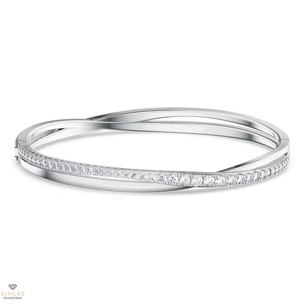 Ez a gyönyörű Swarovski karperec időtlen, visszafogott eleganciáról tesz tanúbizonyságot, modern módon újraértelmezve a spirálos vonulatot. A karperec finoman lekerekített vonalait egyetlen ragyogó fehér kősor követi, sziporkázó kisugárzást kölcsönözve az ékszer formavilágának. Ez a trendi és visszafogott karperec egy kis pompát visz a hétköznapi megjelenésébe. Hossz: 18.5 cm. Szélesség: 0.6 cm. Belső átmérő: 6.2 x 5.6 cm.