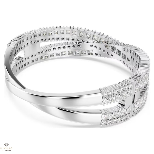 A végtelen szimbóluma által ihletett, zárt Hyperbola karperec ragyogása mindenhová elkíséri. A komplex csuklós kialakítású ródiumbevonatú ékszer átlátszó, különféle metszésű Swarovski Zirconia kövekkel díszítve fonja körül a csuklót. A gondos szakértelemmel, aprólékosan kidolgozott különleges darab csodásan ragyogóvá varázsolja összeállításait. Hossz: 16.1 cm, Szélesség: 1.7 cm, Belső átmérő: 5.4 x 4.8 cm
