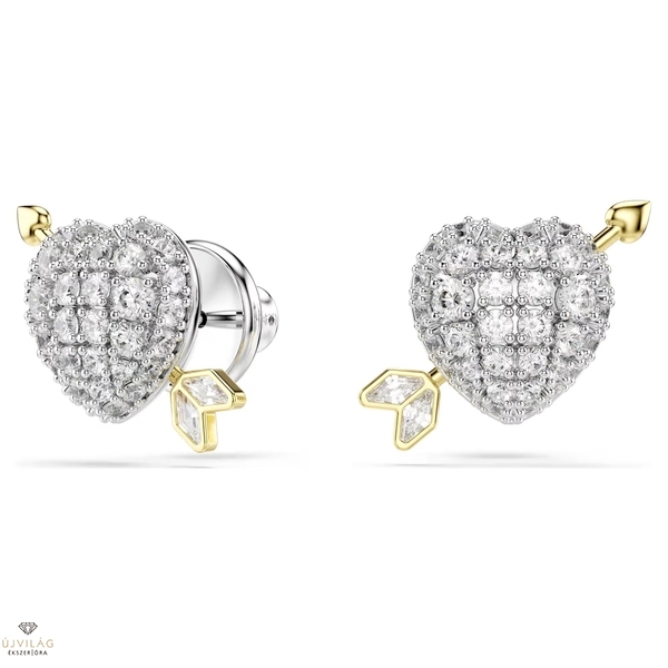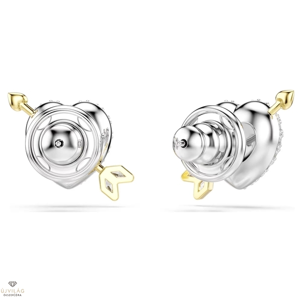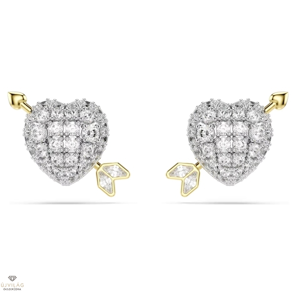 Ünnepelje az igaz szerelmet ezzel a szív alakú Idyllia bedugós fülbevalóval. Mindkét darab ródiumbevonatú szívet ábrázol, csillogó Swarovski Zirconia kristályokkal díszítve, melyet Ámor arany tónusú bevonattal ellátott nyila szúr át. Finom, mégis kifejező módja annak, hogy megmutassa személyes stílusát. Méret: 1.3 x 1.6 cm.