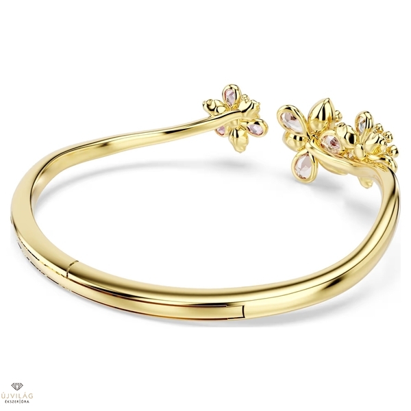 Ölelje körbe csuklóját az Idyllia termékcsalád ezen aranyszínű bevonattal készült karperecével. A Swarovski legkiválóbb savoir-faire-jével készült formavilág három virágcsokrot ábrázol, amelyek mindegyike különböző metszésű és lágy pasztellszínekben pompázó kristályokból áll. Az alján található Wonderclick záróelem biztosítja a könnyű illeszkedést. Viselje ezt a karperecet más, hozzá illő darabokkal, hogy harmonizálja megjelenését. Méretek: Hossz: 16.6 cm. Belső átmérő: 5.8 x 4.8 cm. Minta mérete: 1.7 x 4 cm. Nyitott rész szélessége: 4 cm