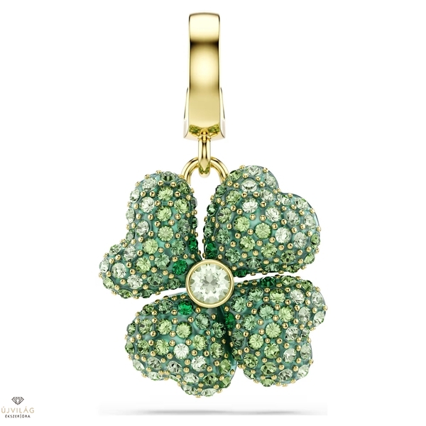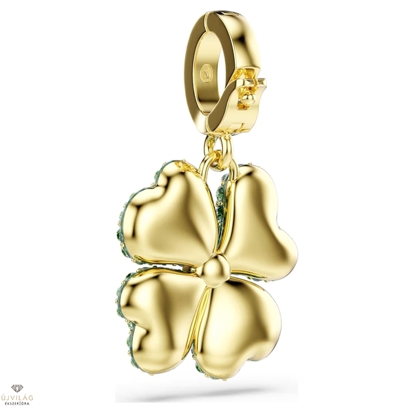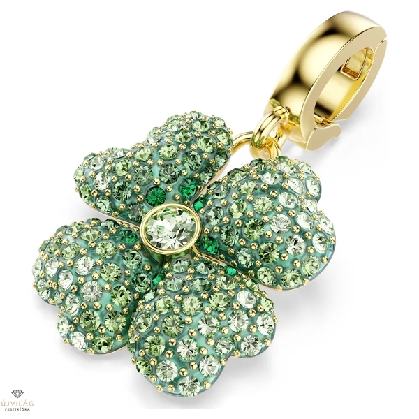 A mindennapi stílust személyesebbé varázsoló, szerencsehozó lóhere charm ideális azok számára, akik sikert szeretnének elérni. A háromdimenziós hatás érdekében négy különféle árnyalatú zöld kristállyal díszített, arany tónusú kreáció egyedi kapcsa révén a charmot különböző nyakláncokon és karkötőkön viselheti. Méret: 2.5 x 1.5 cm