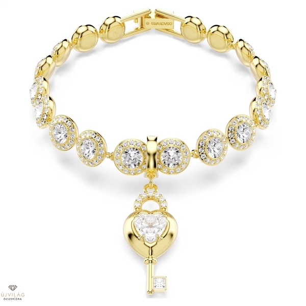 A mindennapi stílust személyesebbé varázsoló, lakat ihlette szív és kulcs charm ideális választás a romantikus lelkek számára. A középen elhelyezett Swarovski Zirconia kristállyal díszített, arany tónusú bevonattal ellátott kreáció egyedi kapoccsal rendelkezik, amely lehetővé teszi, hogy a charmot különböző nyakláncokon és karkötőkön viselje. Méret: 3.7 x 1.1 cm.