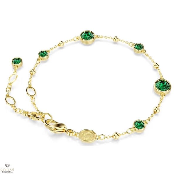 Dinamikus formavilágával az Imber karkötő különleges ragyogást kölcsönöz a csuklónak. Az aranyszínű bevonatú lánc delfin zárral és fémcseppekből álló strandból készült, amelyek között kerek, zöld kristályok sorakoznak kifinomult bezel foglalatban. A darab extra hosszabbítóval rendelkezik, így minden csuklómérethez illik. Tökéletes választás, ha lágy és kecses kiegészítőre vágyik. Méretek: Hossz (minimum - maximum): 16.5 - 20.5 cm. Minta mérete: 0.6 x 0.6 cm