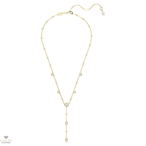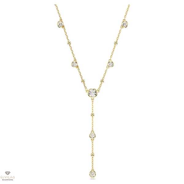 Jellegzetes formájának köszönhetően ez az Imber nyaklánc kihagyhatatlan darab. Az ékszer aranyszínű bevonatú láncát a szikrázó fémcseppek sokasága és a telt bezel foglalatba helyezett káprázatos, kerek metszésű kristályok teszik hangsúlyossá. Középen elegánsan függ egy finom lánc, a hosszabbítóban elhelyezett Swarovski Zirconia kő pedig még elegánsabbá varázsolja az összhatást. Az Imber fülbevalókkal kiegészülve még látványosabbá tehető a megjelenés. Hossz (minimum - maximum): 38 - 45 cm, Szélesség: 0.9 cm