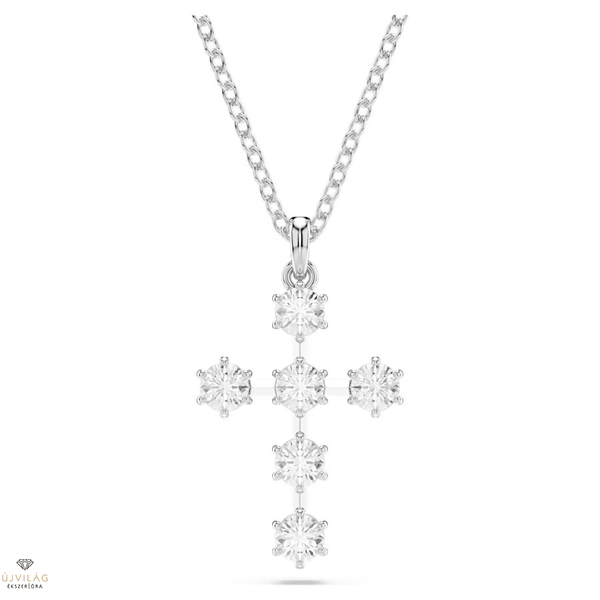Az Insigne család szimbolikus medálját 6 kerek Swarovski Zirconia díszíti a stílusos kereszt alakzaton. A medál delfinkapoccsal és a hosszabbítás végén egy további kővel egészül ki. Kifejező ékszer önmaga számára, vagy tökéletes ajándék egy szerettének. Hossz (minimum - maximum): 38 - 45 cm, Minta mérete: 2.6 x 1.6 cm