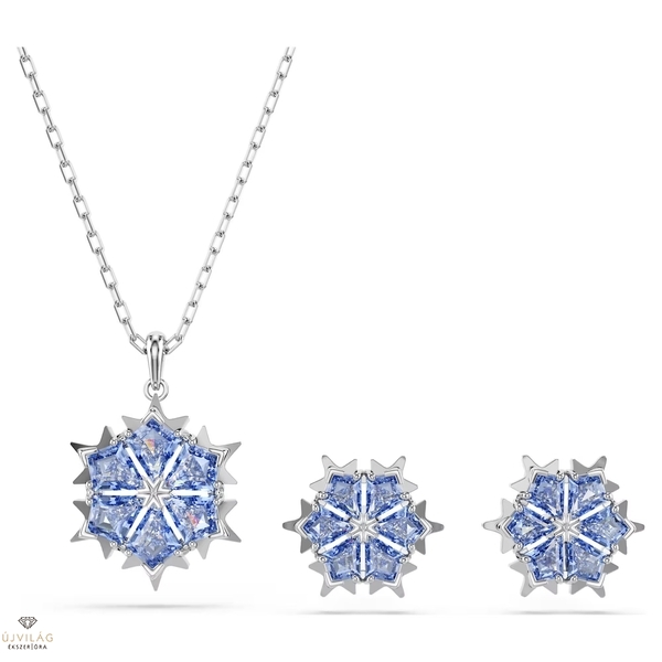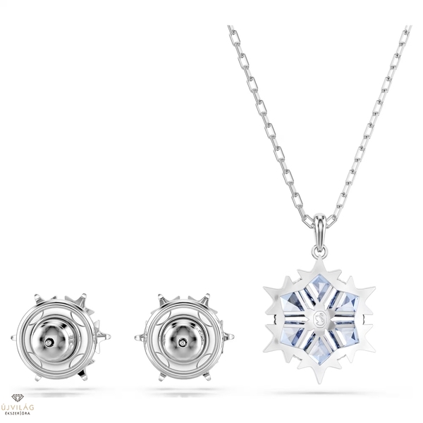 Ez a különleges ékszerszett a hópelyhek csodálatos ünnepléseként készült. A hozzá illő medállal és fülbevalópárral ellátott, ródiumbevonatú darabok mindegyike a szürkéskék Swarovski Zirconia kövek időtlen ragyogásával készült, elegáns és varázslatos megjelenést kölcsönözve Önnek. Méretek: Nyaklánc hossza: 38 - 43 cm. Minta mérete: 1.9 x 1.3 cm. Fülbevalók: 1 x 1 cm