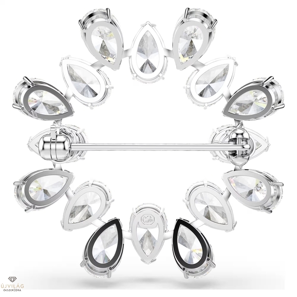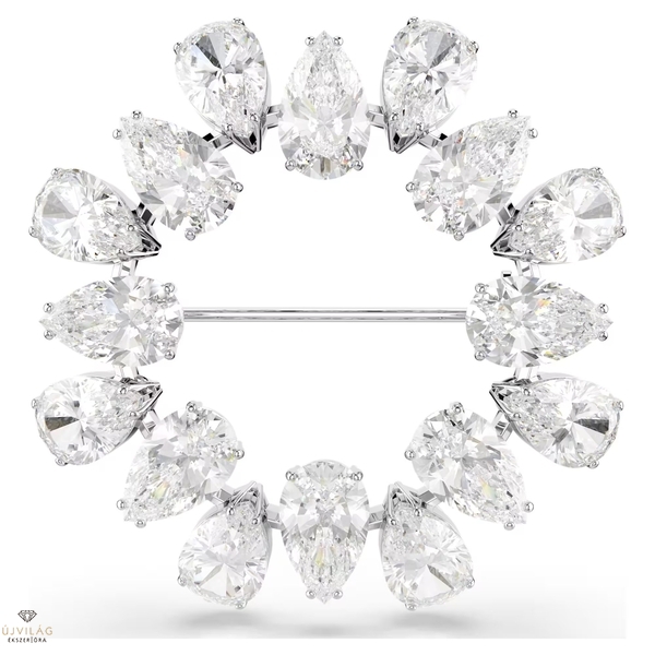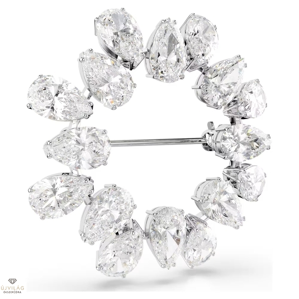 Ez a ragyogó fényglória a tökéletes kiegészítő a stílusa beragyogásához. A ródiumbevonattal ellátott ékszer körte metszésű Swarovski Zirconia kövekből álló kört foglal magába, amelyek átlátszó színárnyalatban, váltakozó irányban pompáznak a lenyűgöző hatásért. Viselje más Matrix ékszerekkel együtt az elegancia fokozásához. Méret: 3.6 x 3.6 cm.