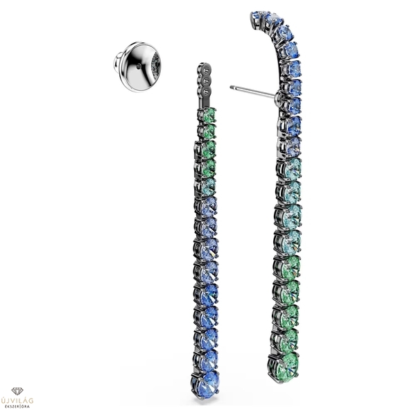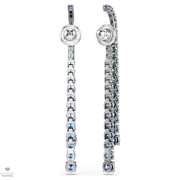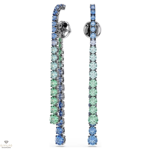 Tegye látványosabbá megjelenését ezzel az élénk színű Swarovski fülbevalóival. A ruténiumbevonatú darabok két kristályszálból állnak, amelyek a türkiztől a kékig terjedő, drámai színátmenetben pompáznak. Viselje a hozzáillő Matrix Tennis nyaklánccal a tekinteteket vonzó összhatásért. Méret: 7 x 0.5 cm.