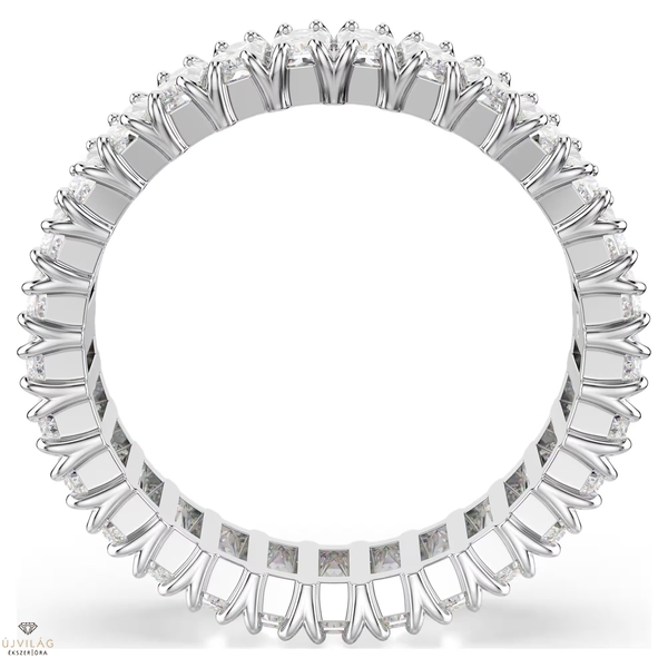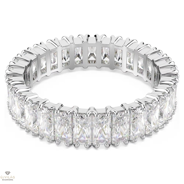 Egyetlen ékszerkollekció sem lehet teljes egy tündöklő karikagyűrű nélkül. Az ezüstszínű bevonattal ellátott darab ékét a gyűrűt kör alakban teljesen körülölelő, finom prong foglalatos, Baguette metszésű Swarovski Zirconia kövek jelentik. Lebilincselő ékszer, amely önmagában és a Matrix család hasonlóan káprázatos gyűrűivel halmozva is viselhető.