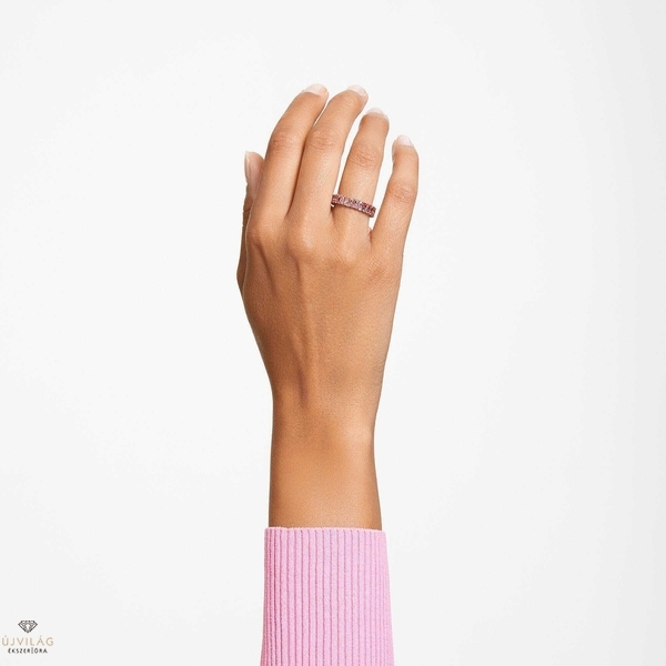 Ez a Matrix gyűrű csupán egyetlen kis ékszerhez hihetetlen részletet rejt magában. A rózsa arany tónusú borítás tökéletes alap egy rózsaszín kövekből álló körhöz, gyönyörű bagett hercegnős szabásban. A kristályok mindegyike kecsesen a helyén van egy fogas beállítással, hogy csodálatos általános színvilágot biztosítson. Ezt az elegáns gyűrűt úgy tervezték, hogy egymásra helyezze az Ön stílusát, így többféle kombinációt tesz lehetővé különleges alkalmakra.